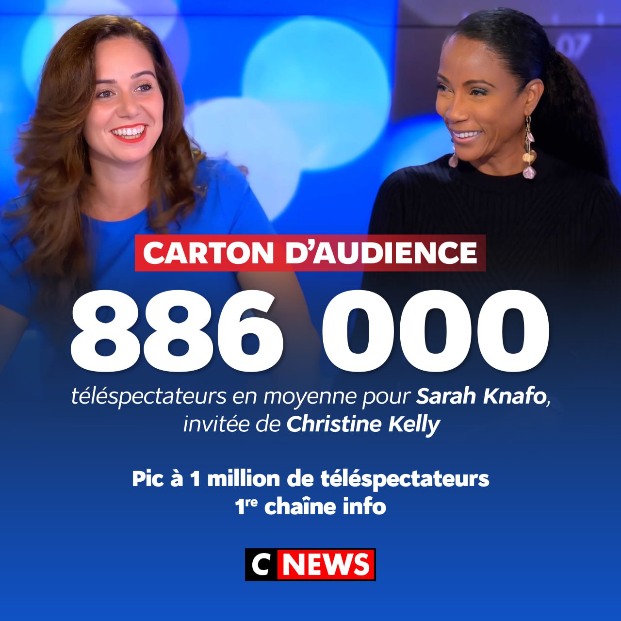 De l’autre, Sarah Knafo chez Christine Kelly sur CNews, qui a littéralement fait EXPLOSER l’audimat : 886 000 téléspectateurs en moyenne.