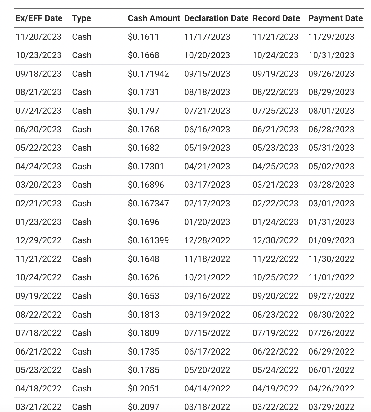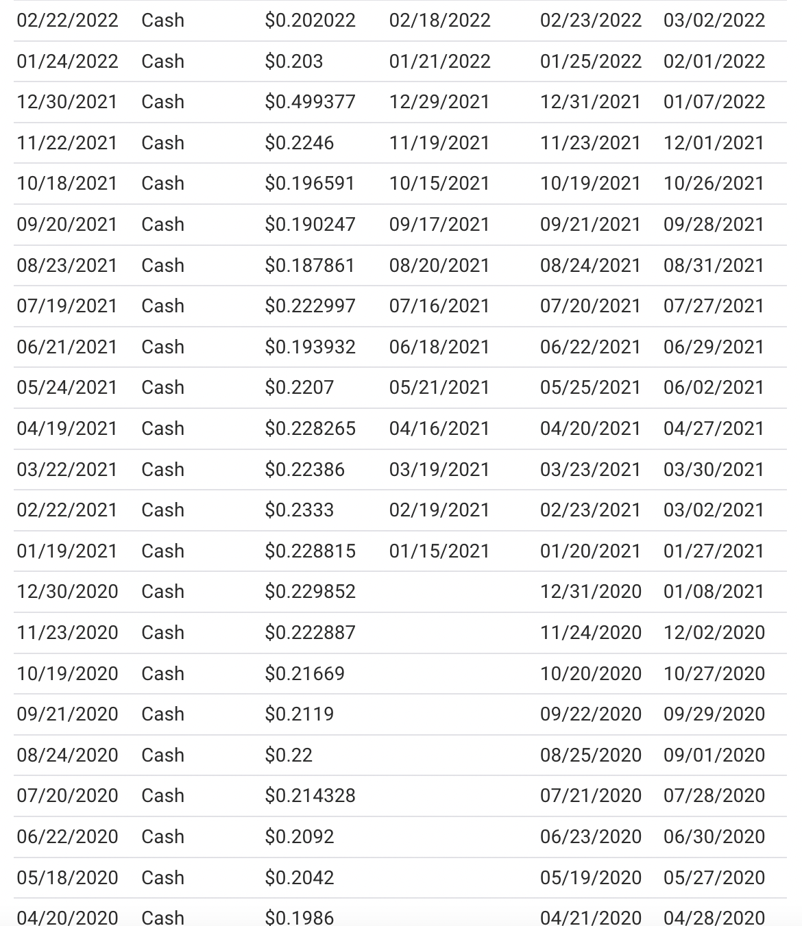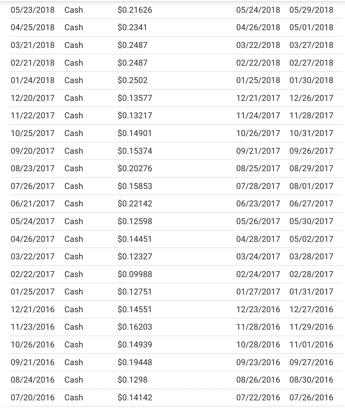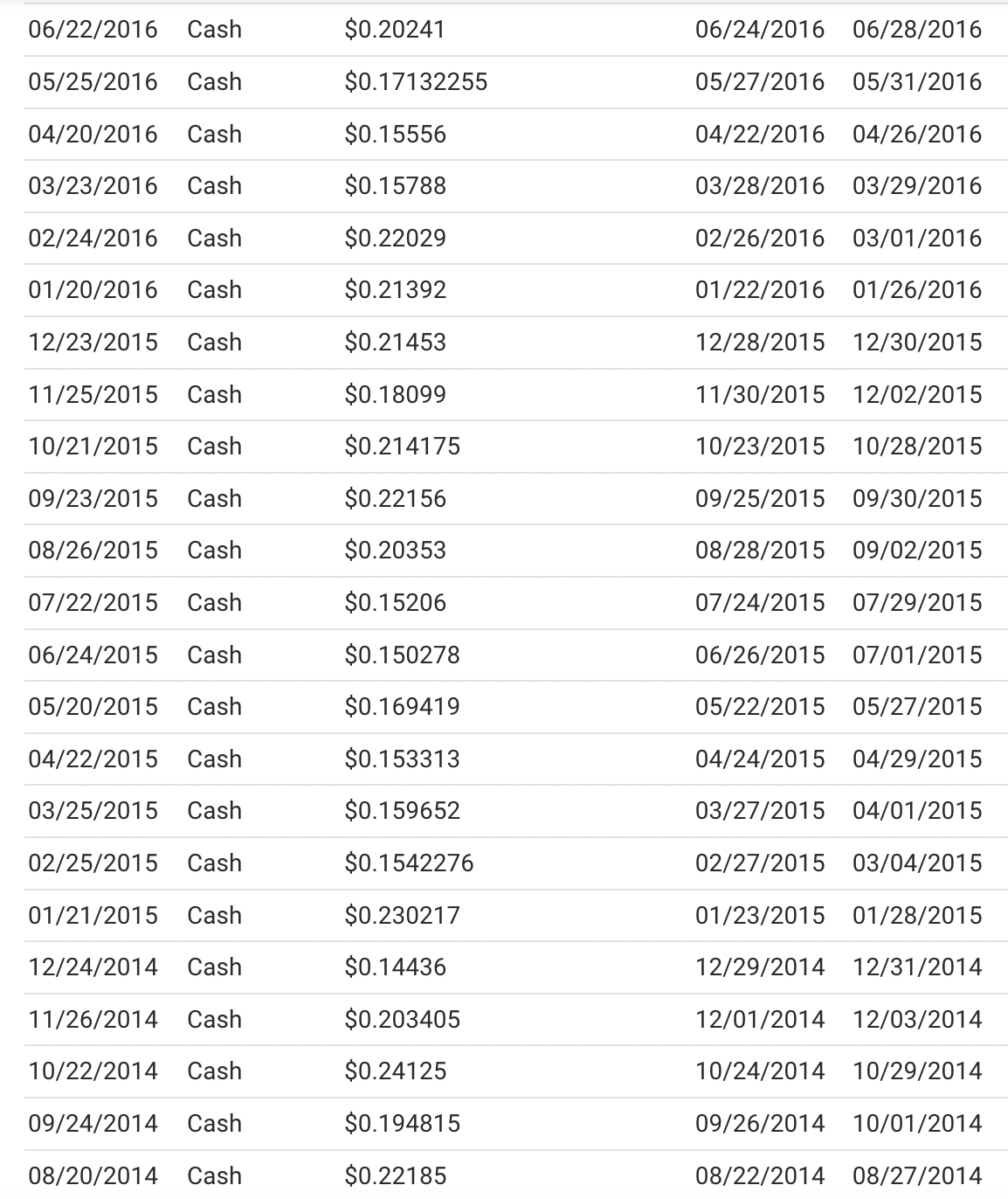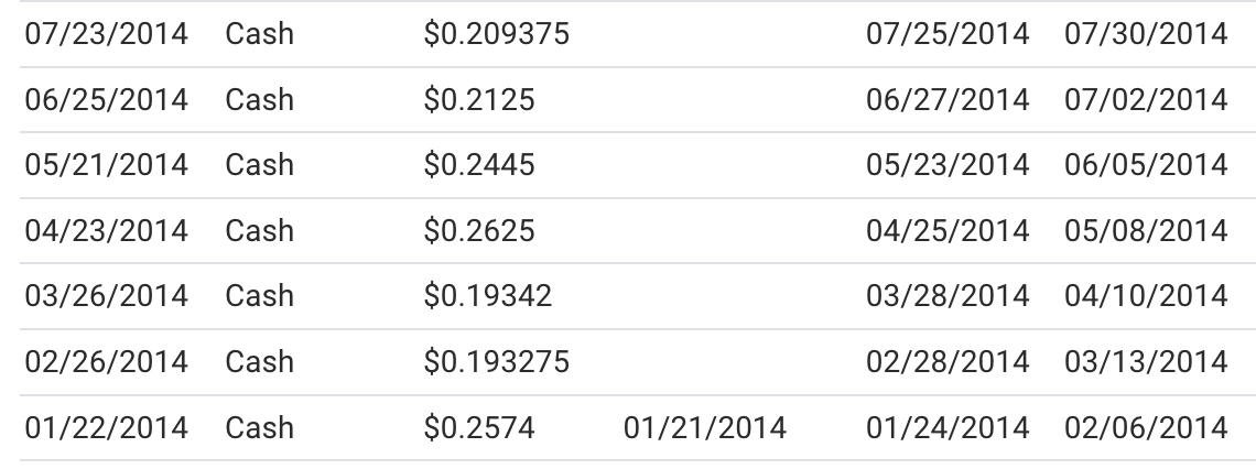 (La somme notifiée dans la colonne « cash » est le paiement chaque mois pour une « action » du truc. Qui est à 17$ pièce aujourd’hui)