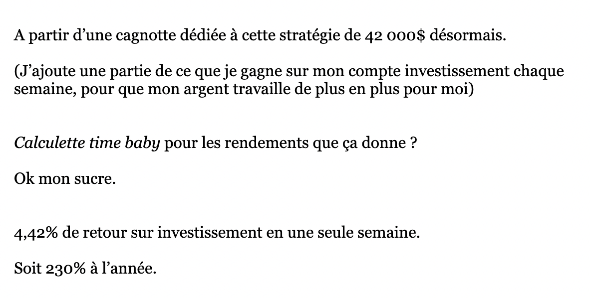 Tu peux voir que j’ai fait 4,42% de rendements en une seule semaine.
