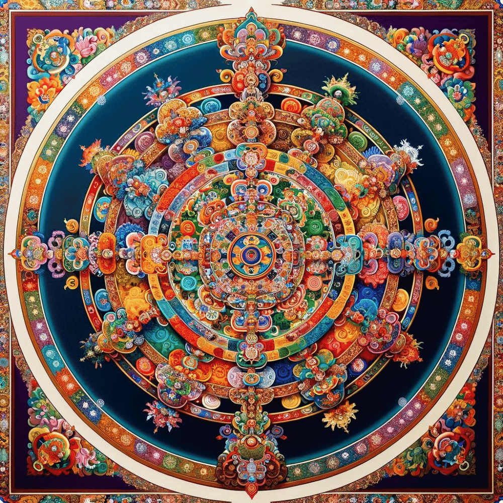 “La contemplation d’un Mandala est censée favoriser l’éveil spirituel, la croissance psychologique et émotionnelle, et accélérer le processus d’illumination.”