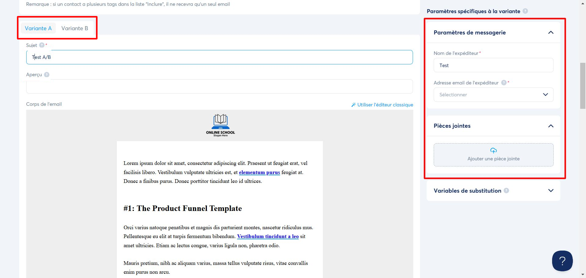 DĂ©finissez les paramĂštres qui s’appliquent aux deux variantes d’email :